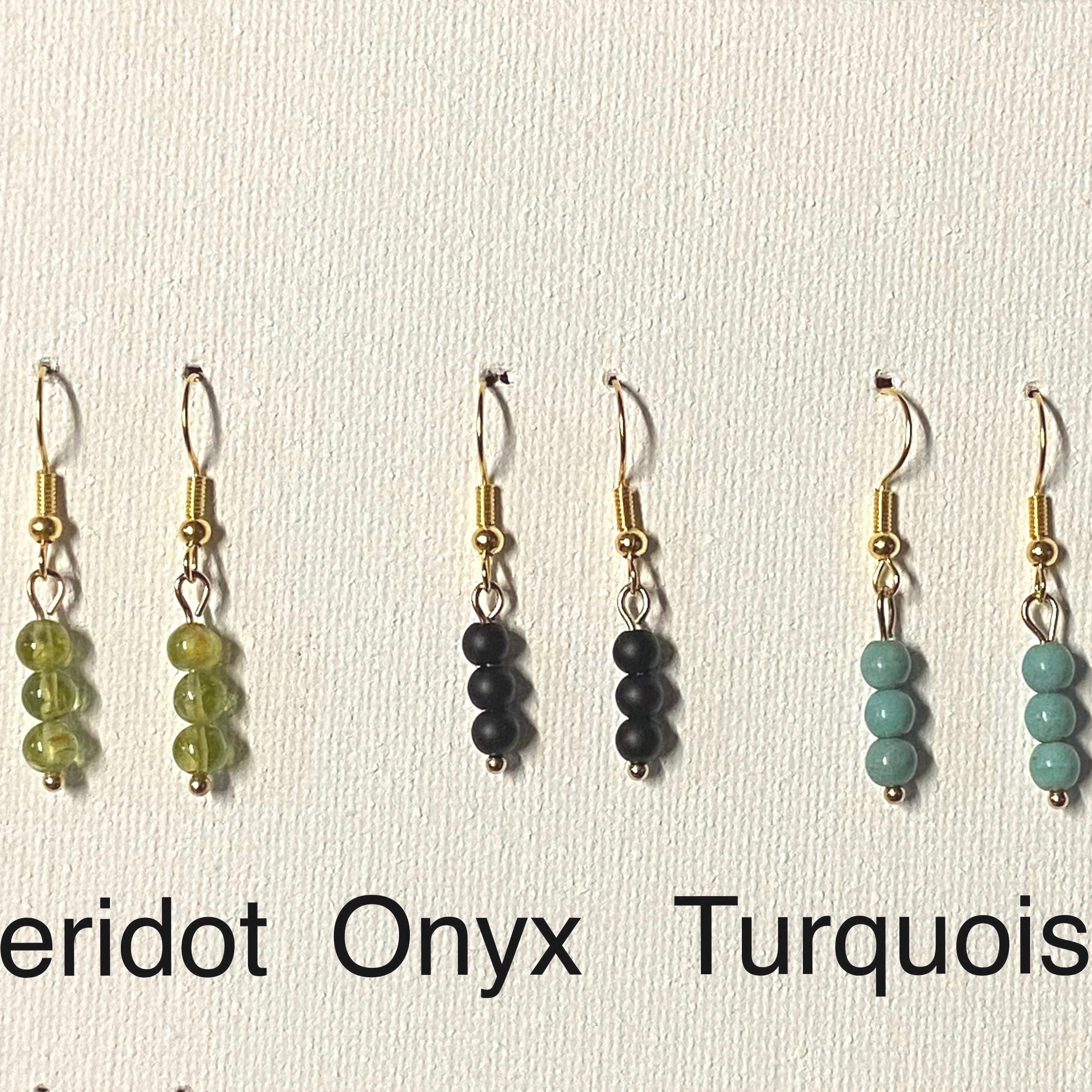 These earrings are available in your choice of peridot, black onyx or turquoise.