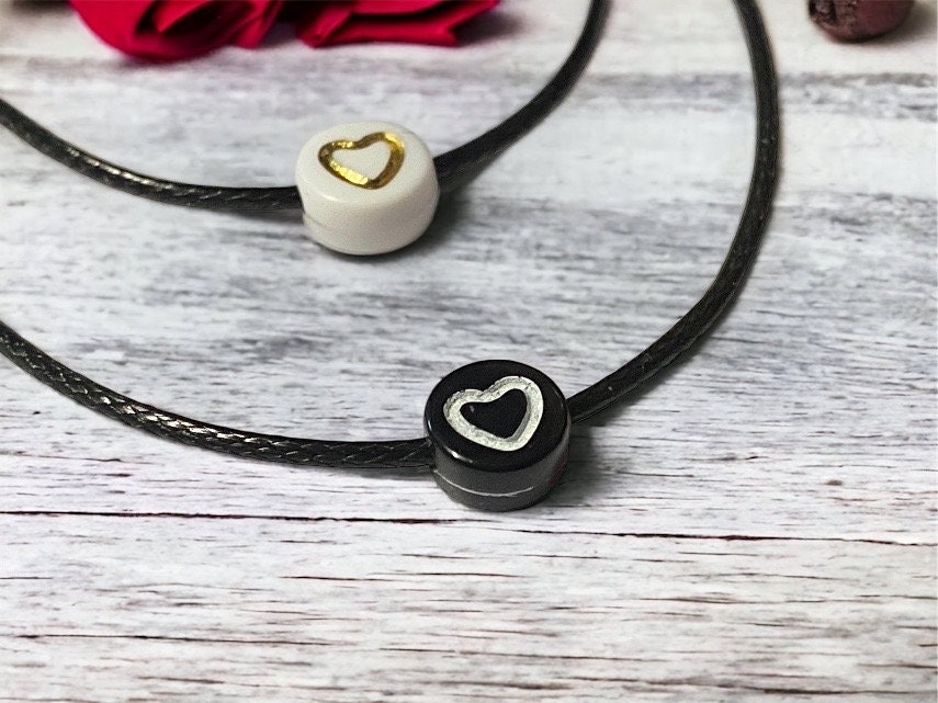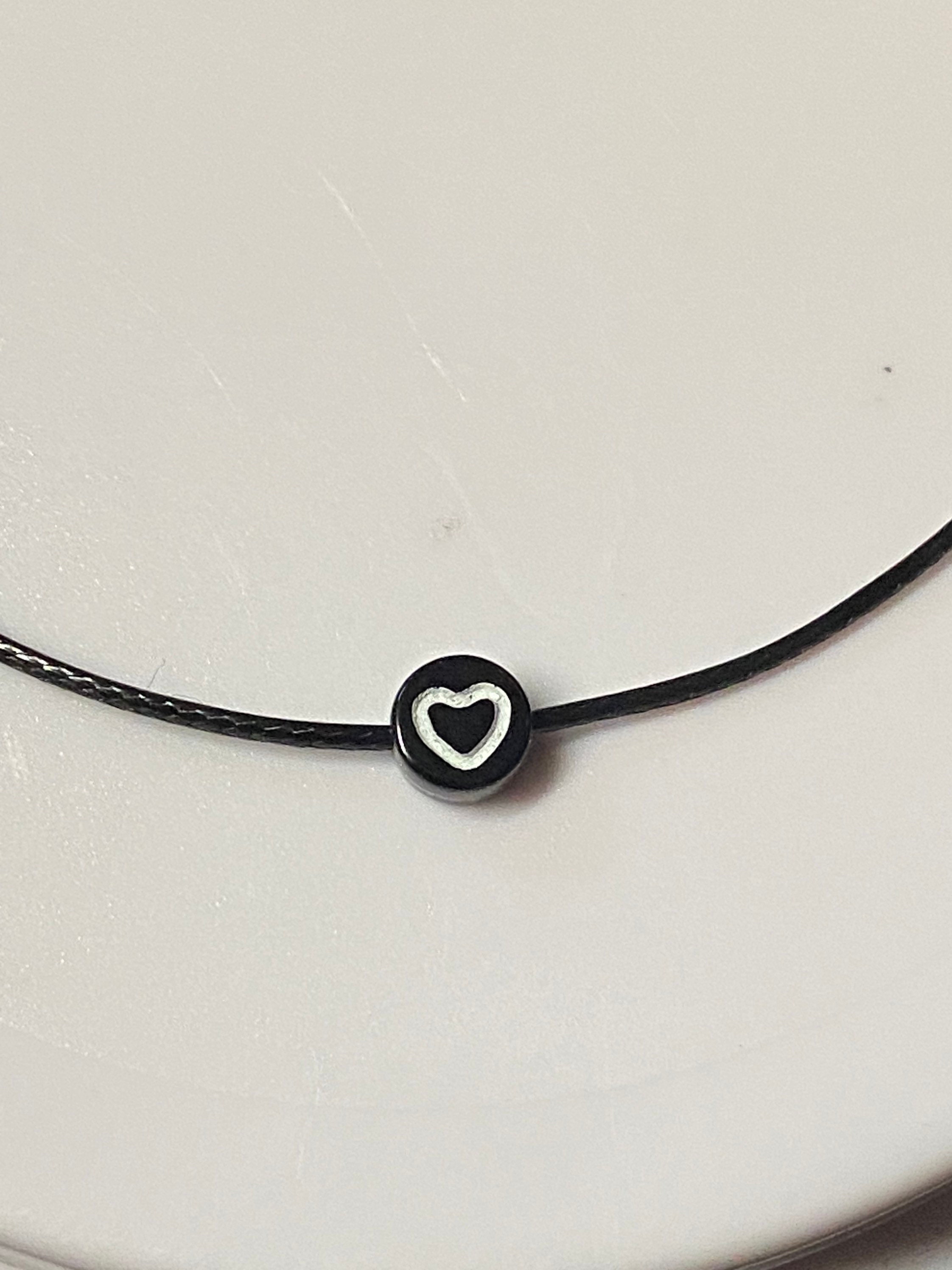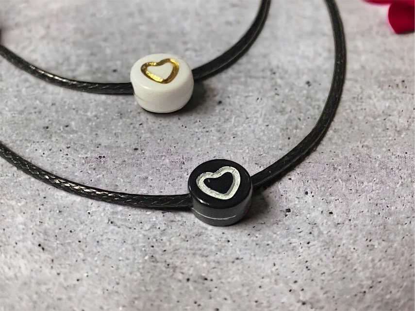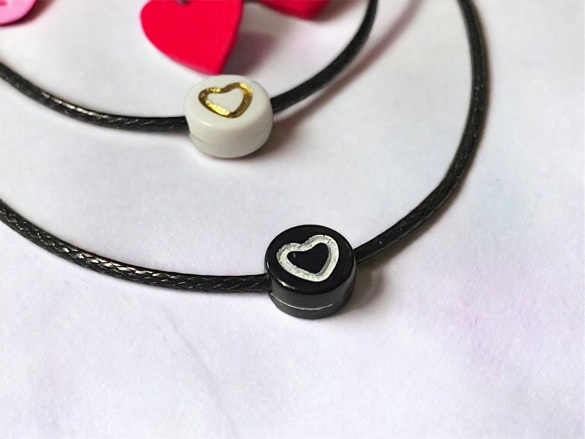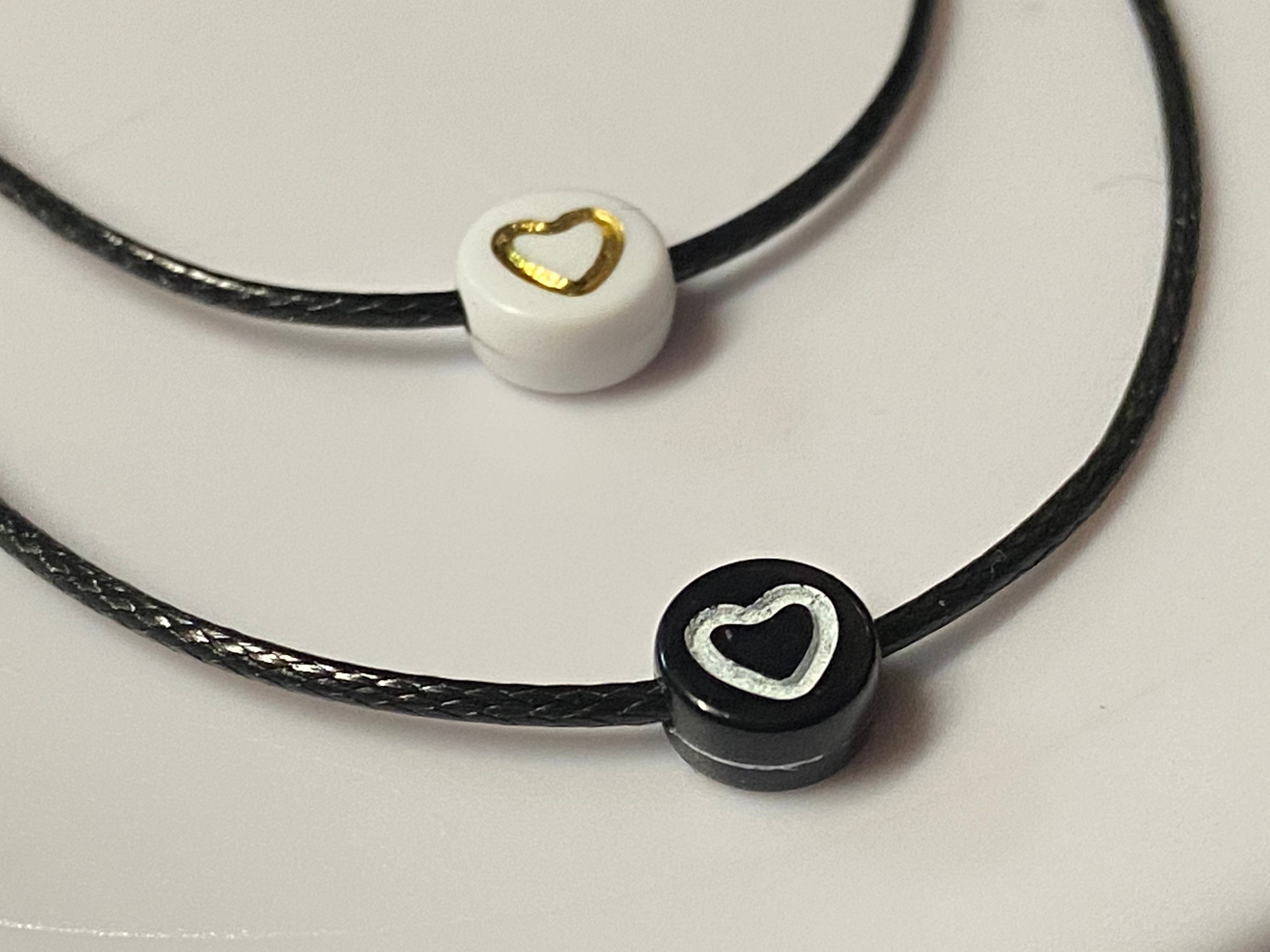 I use 1mm black cord round 7mm beads with heart.