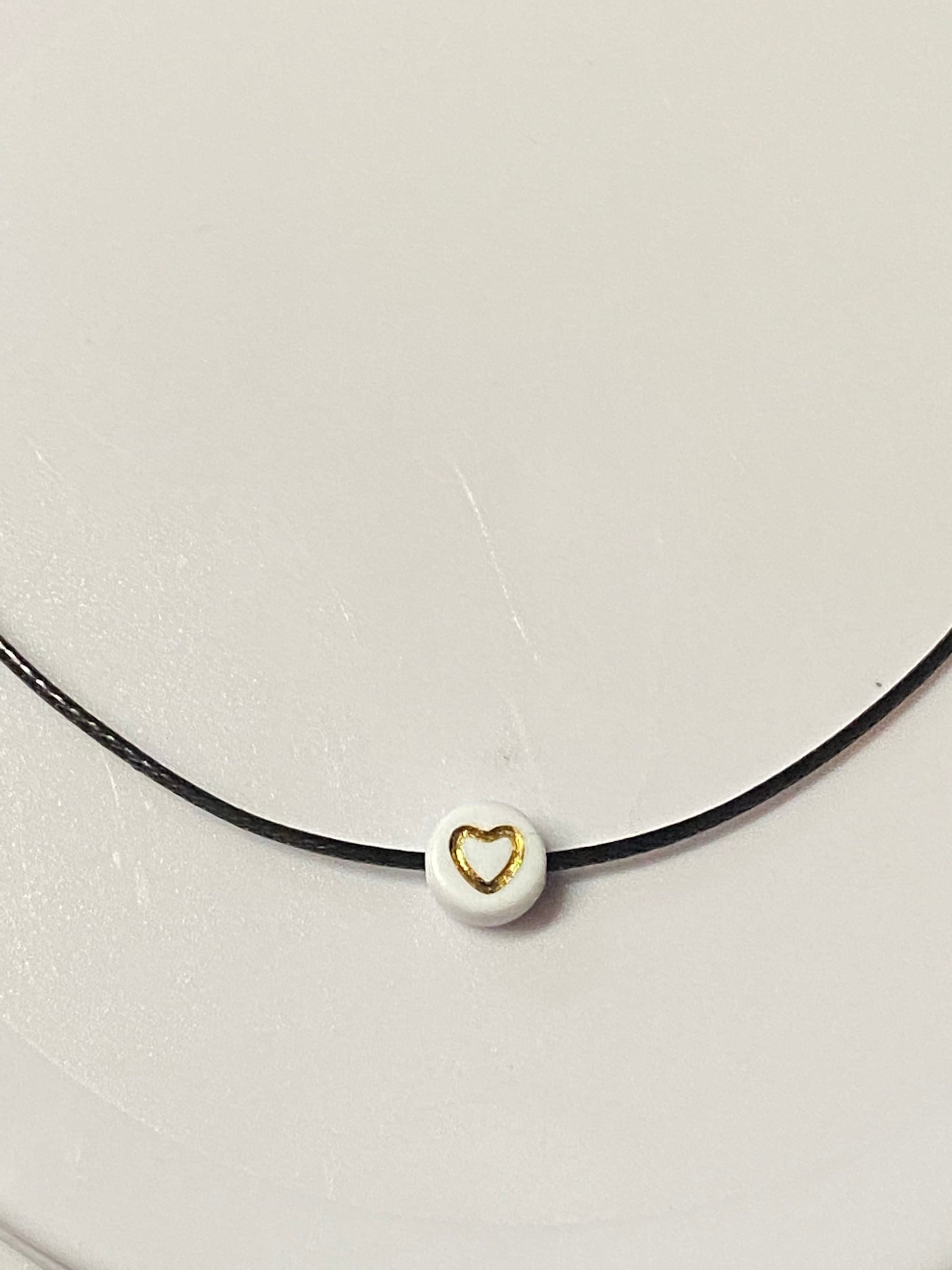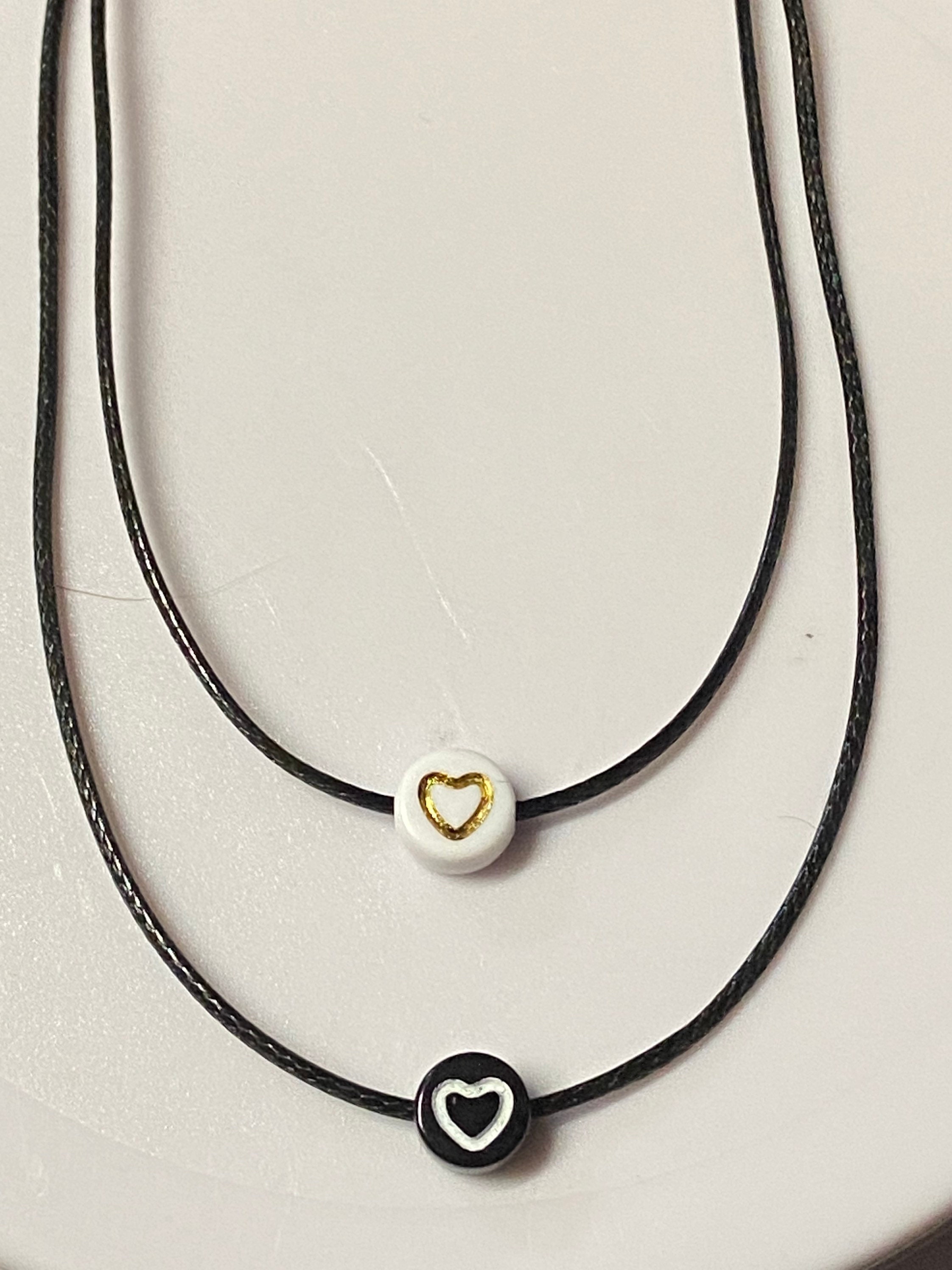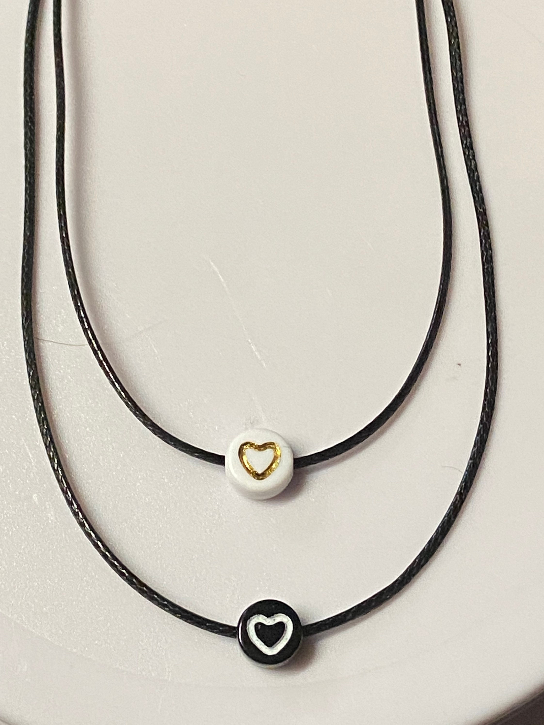 I use 1mm black cord round 7mm beads with heart.