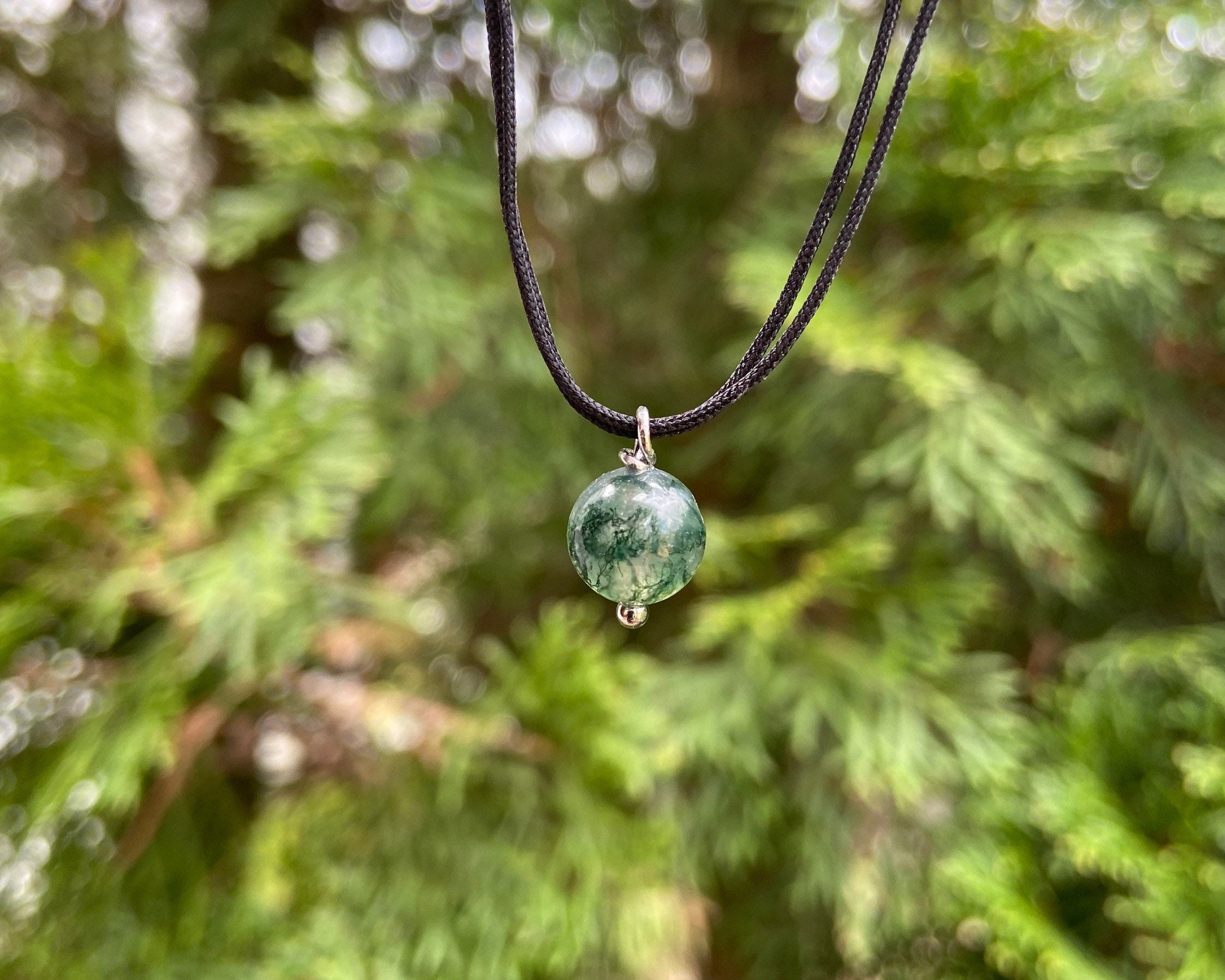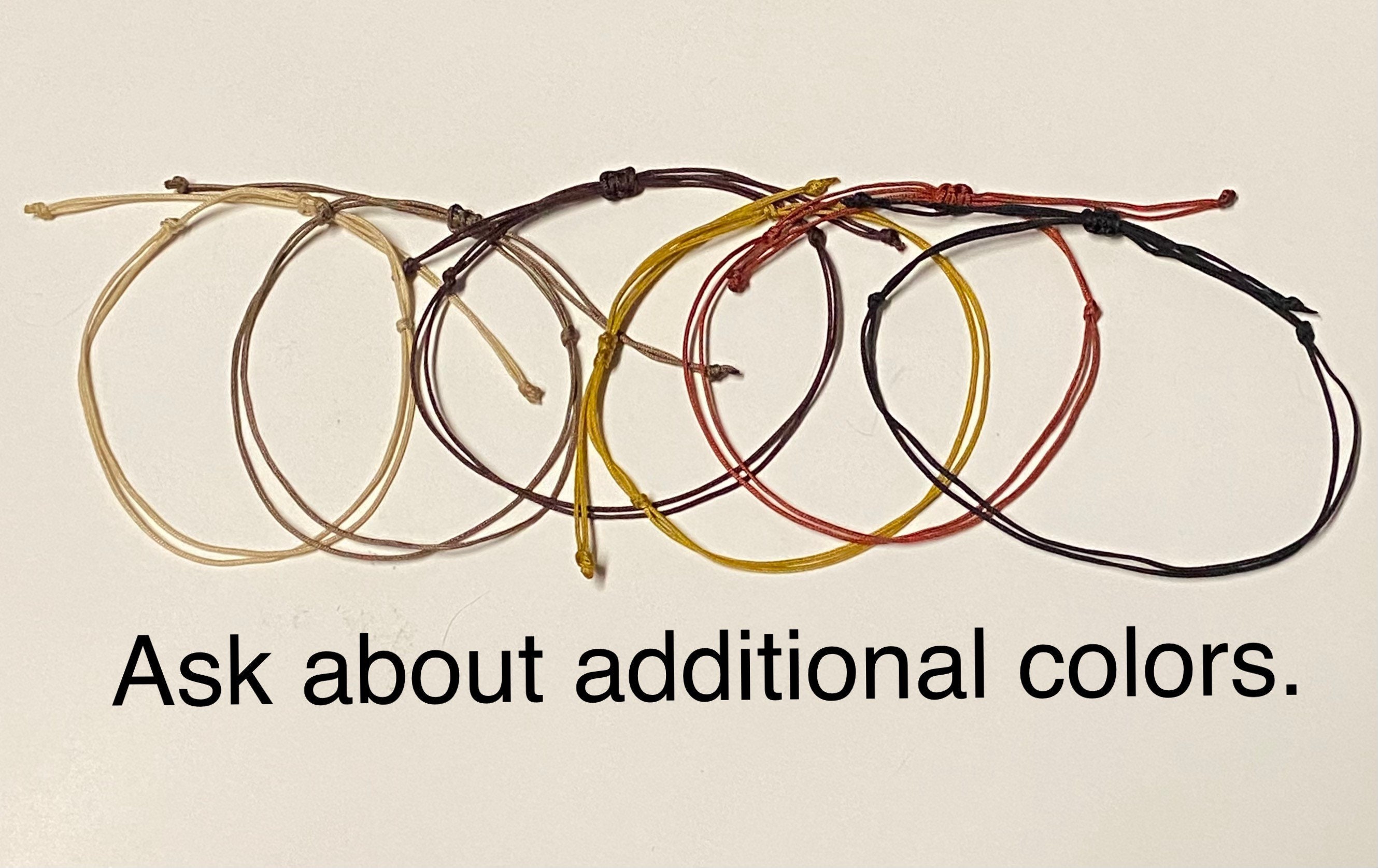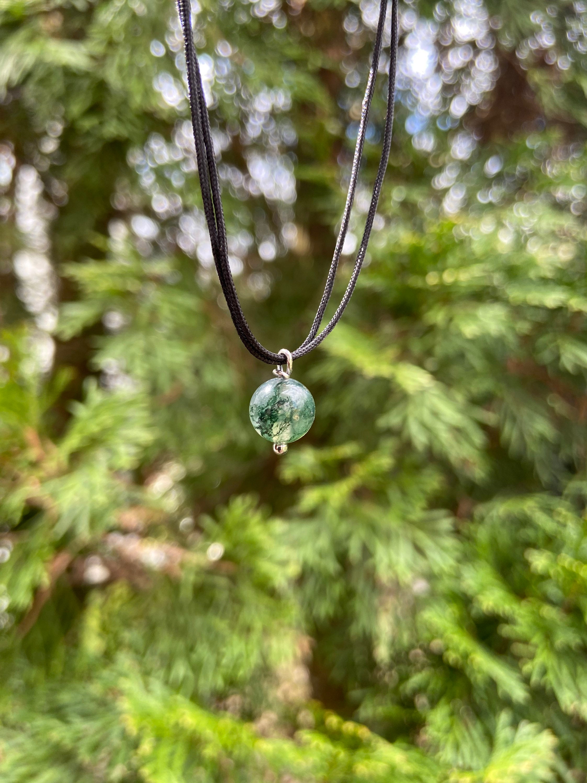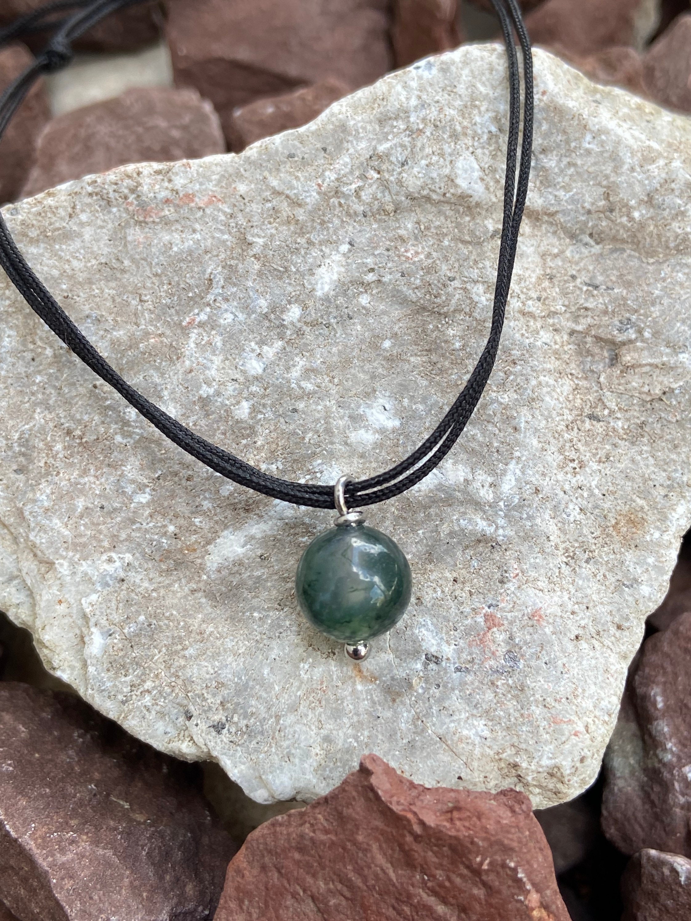 I use black cord and one moss agate bead to create this adjustable bracelet.