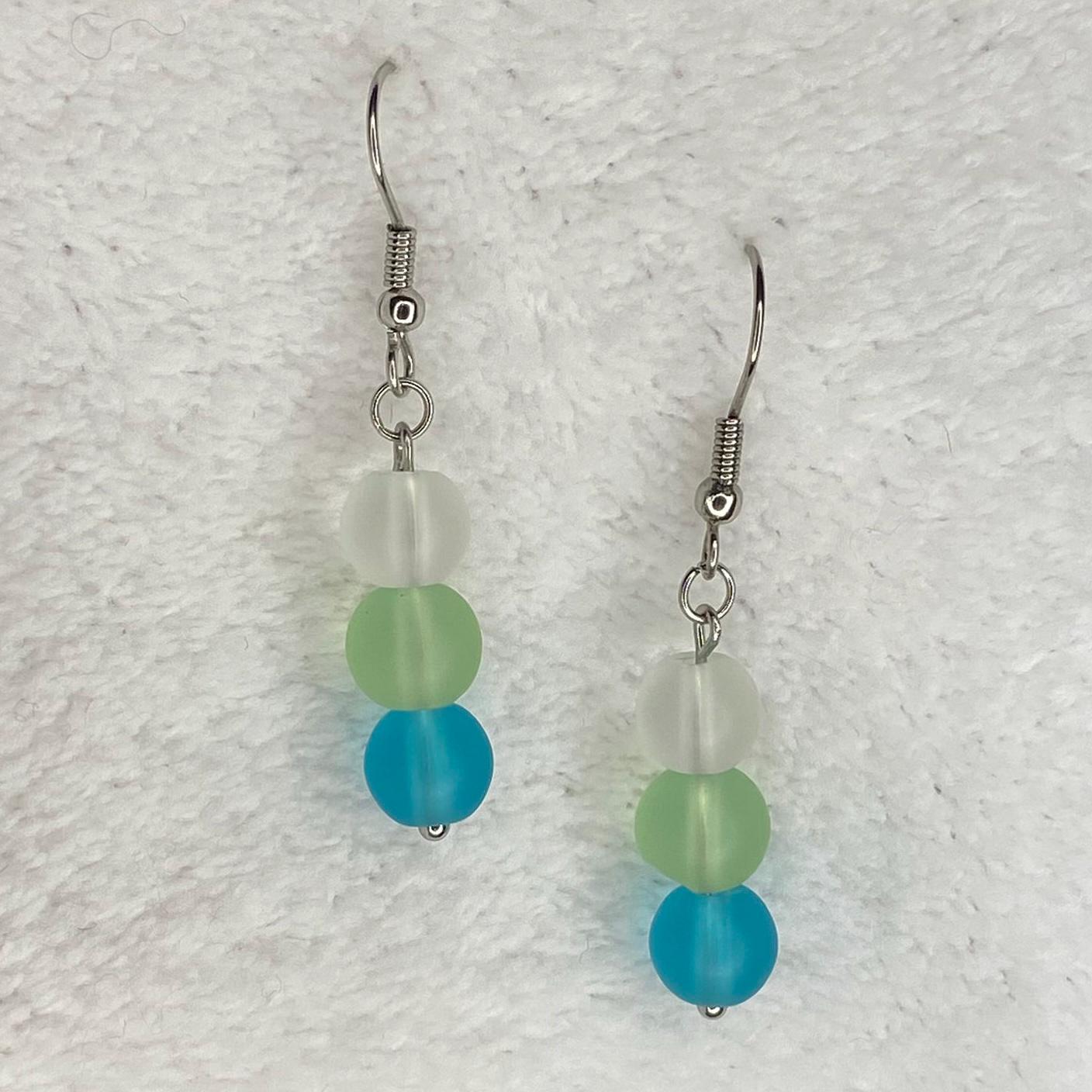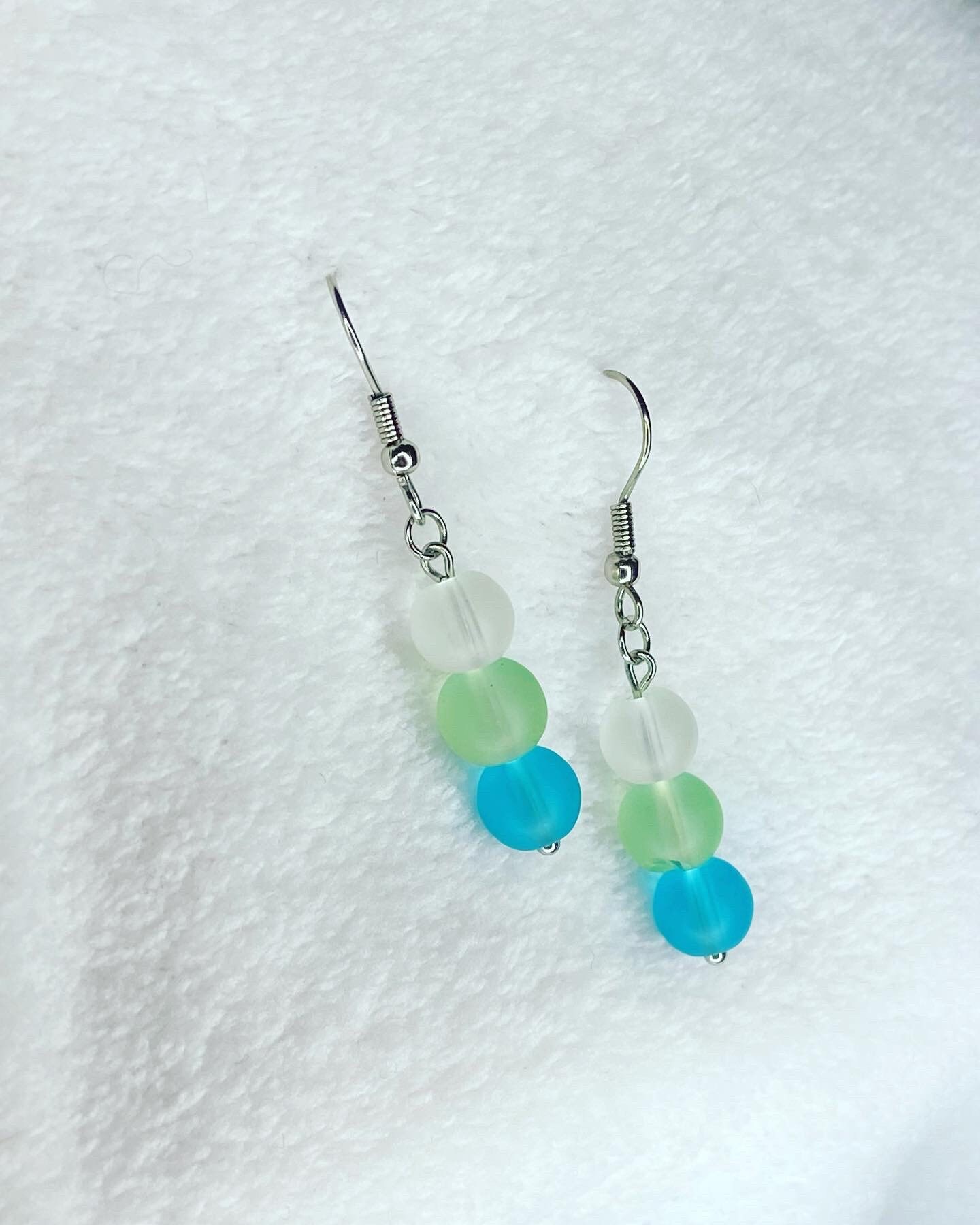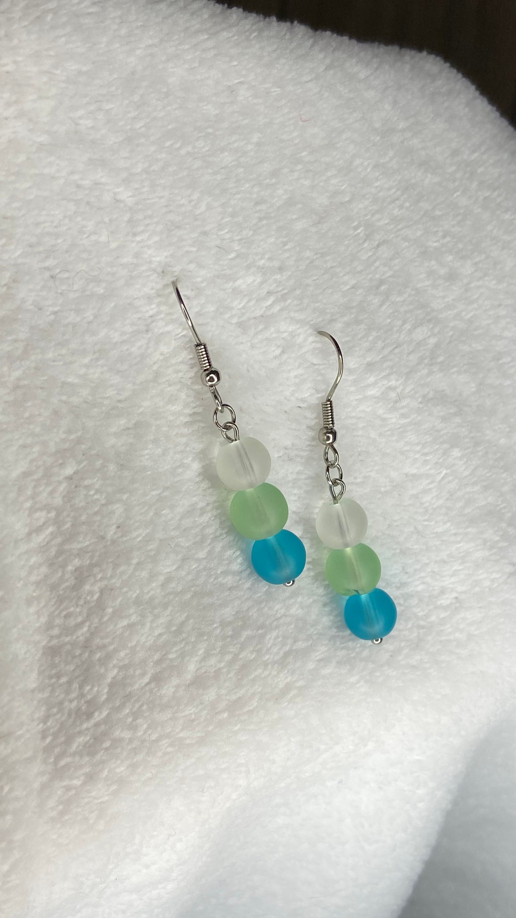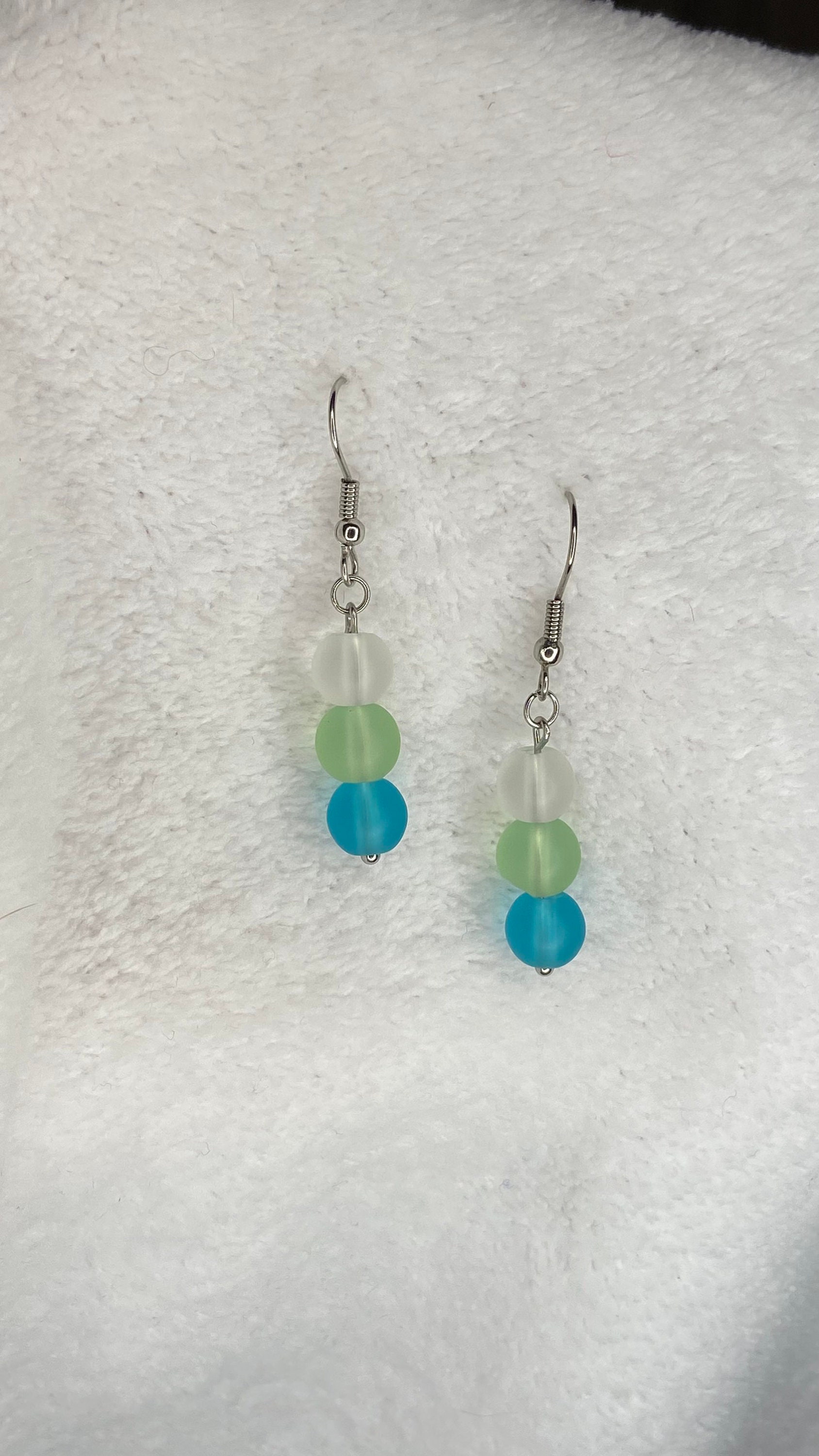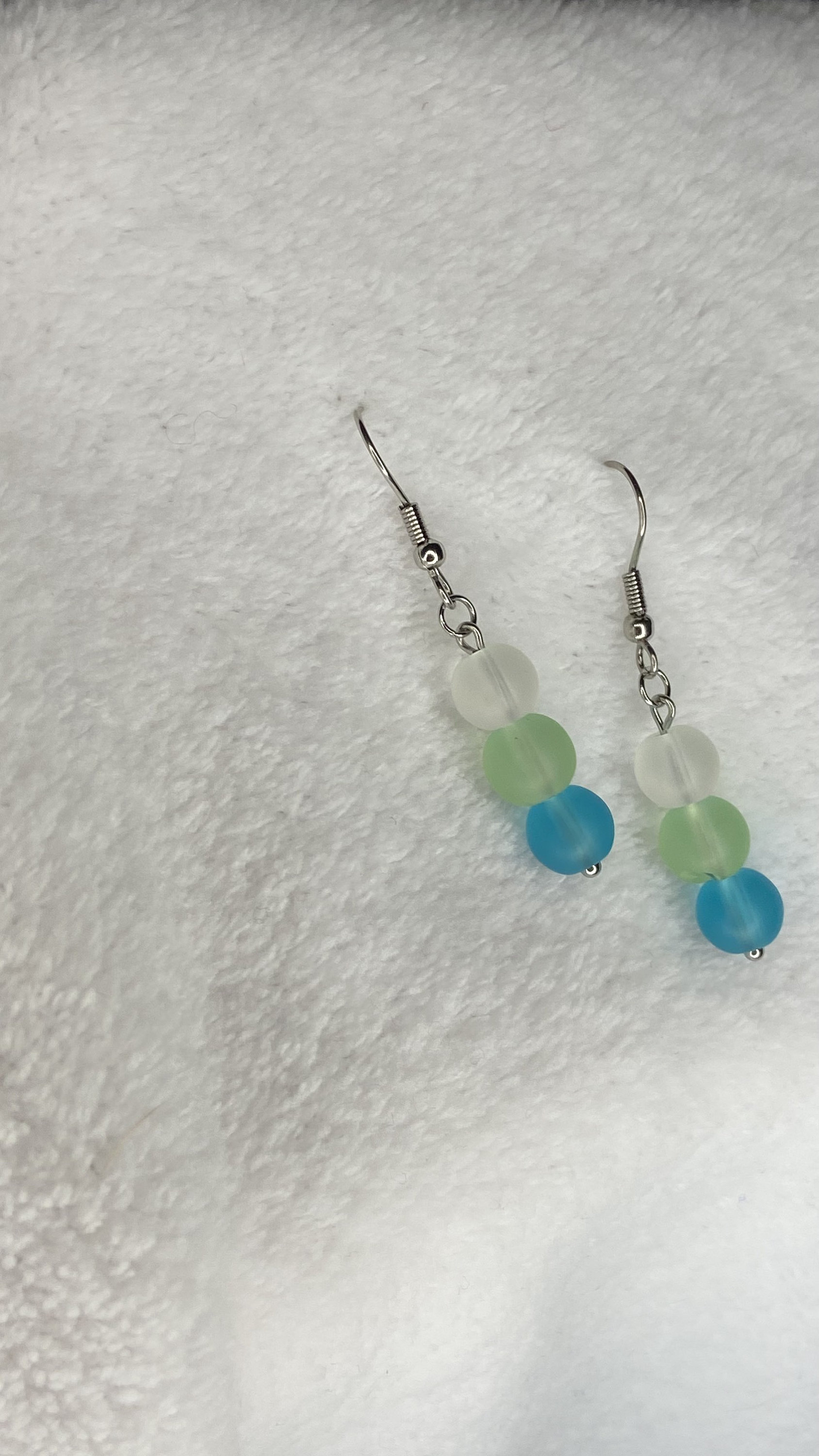 The beads measure 8-10mm and the earrings dangle approximately 1.75” in total length.