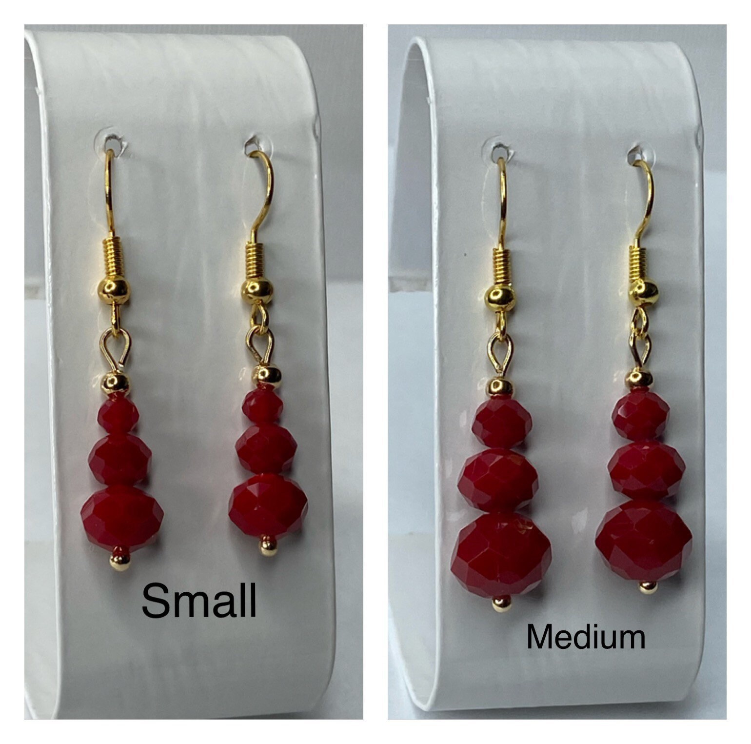 The small earrings dangle to about 1.25 inch and the medium ones dangle to 1.50 inches.