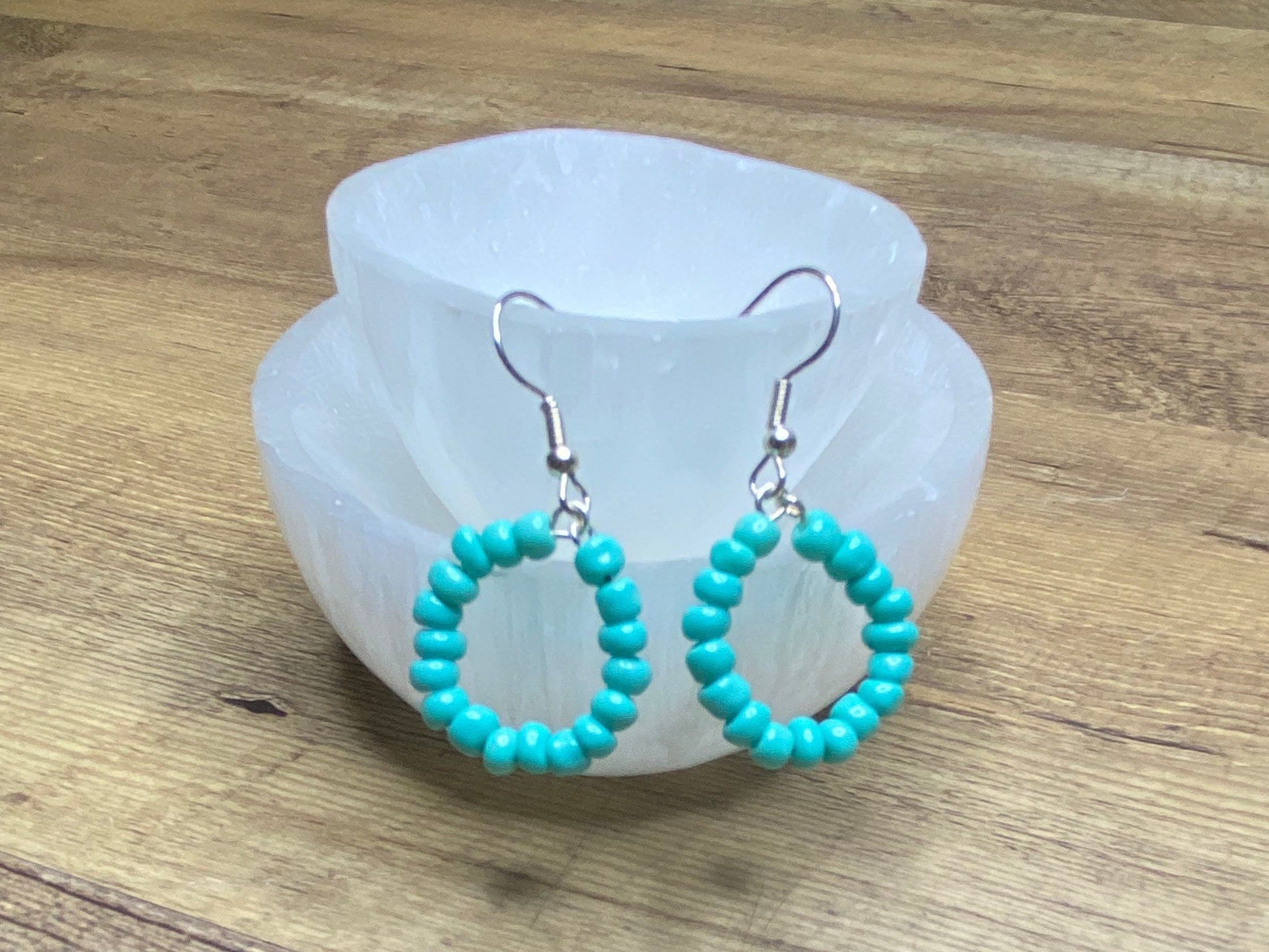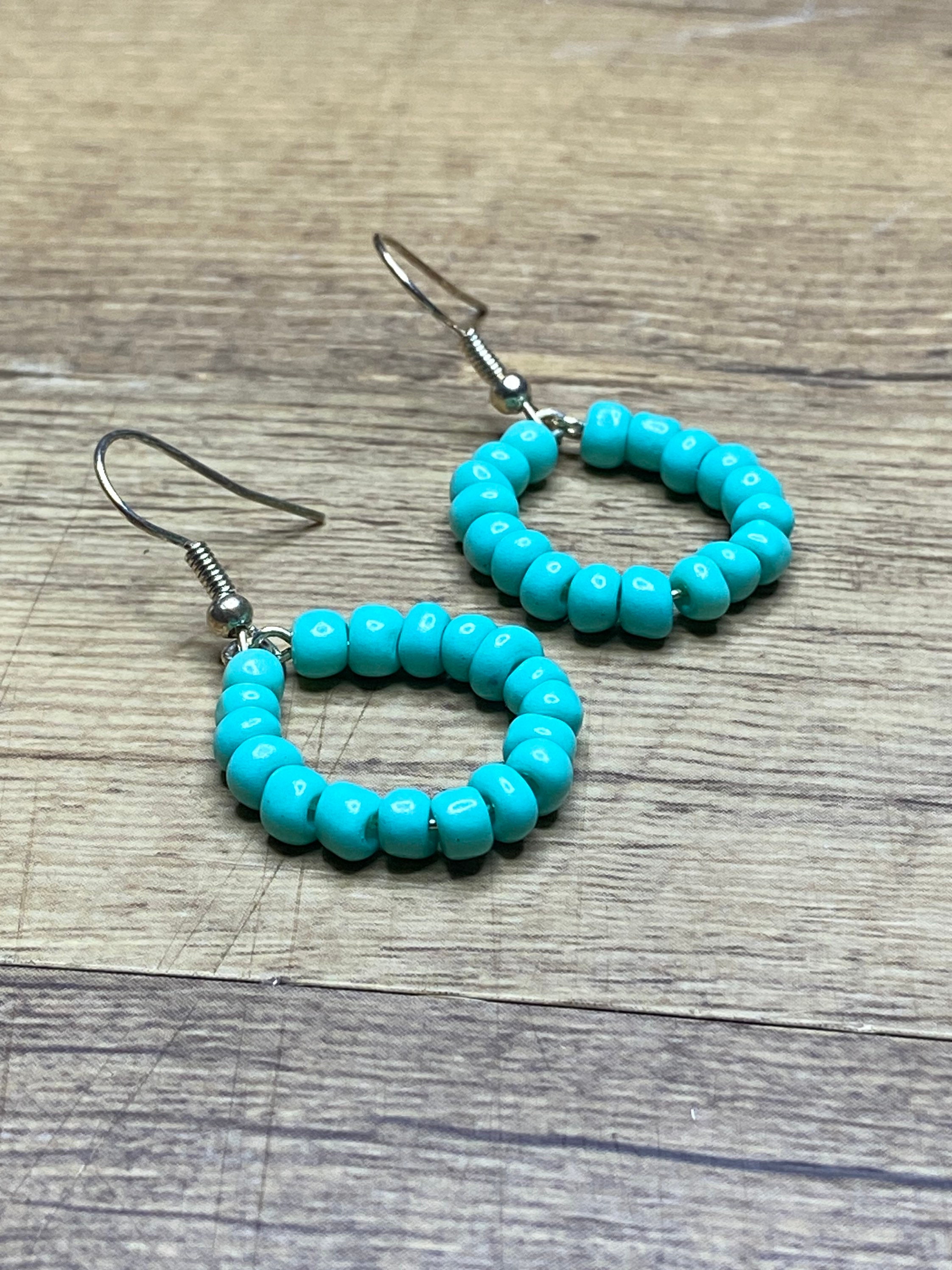 Turquoise Beaded Earrings Hoop Hypoallergenic Earrings Dangle Drop Earring