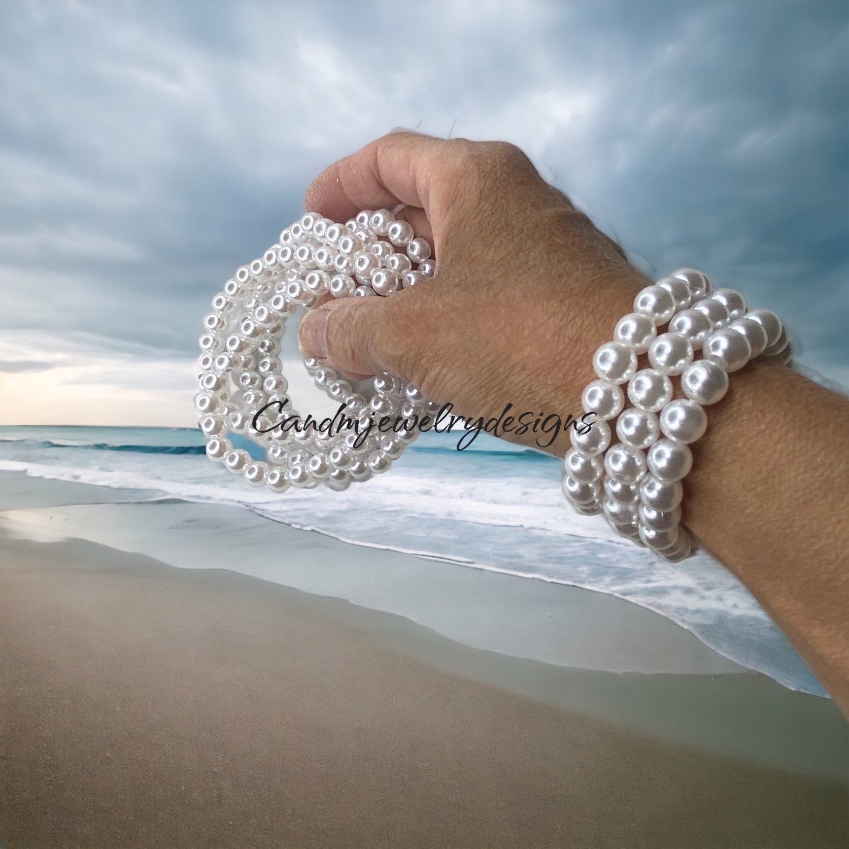 Use these stackable pearl bracelets for gifts, flower girl, boho bride, stocking stuffers and more.