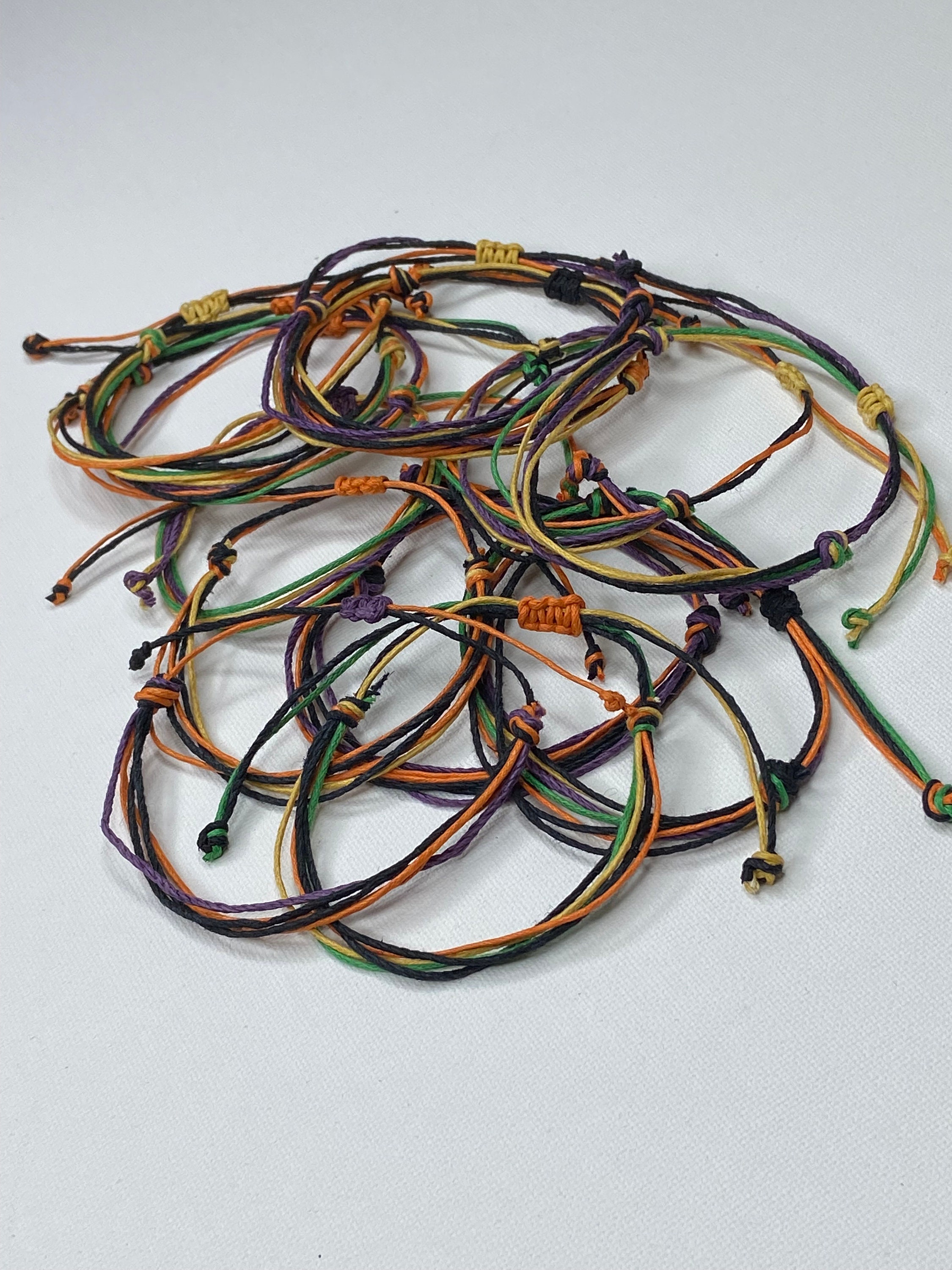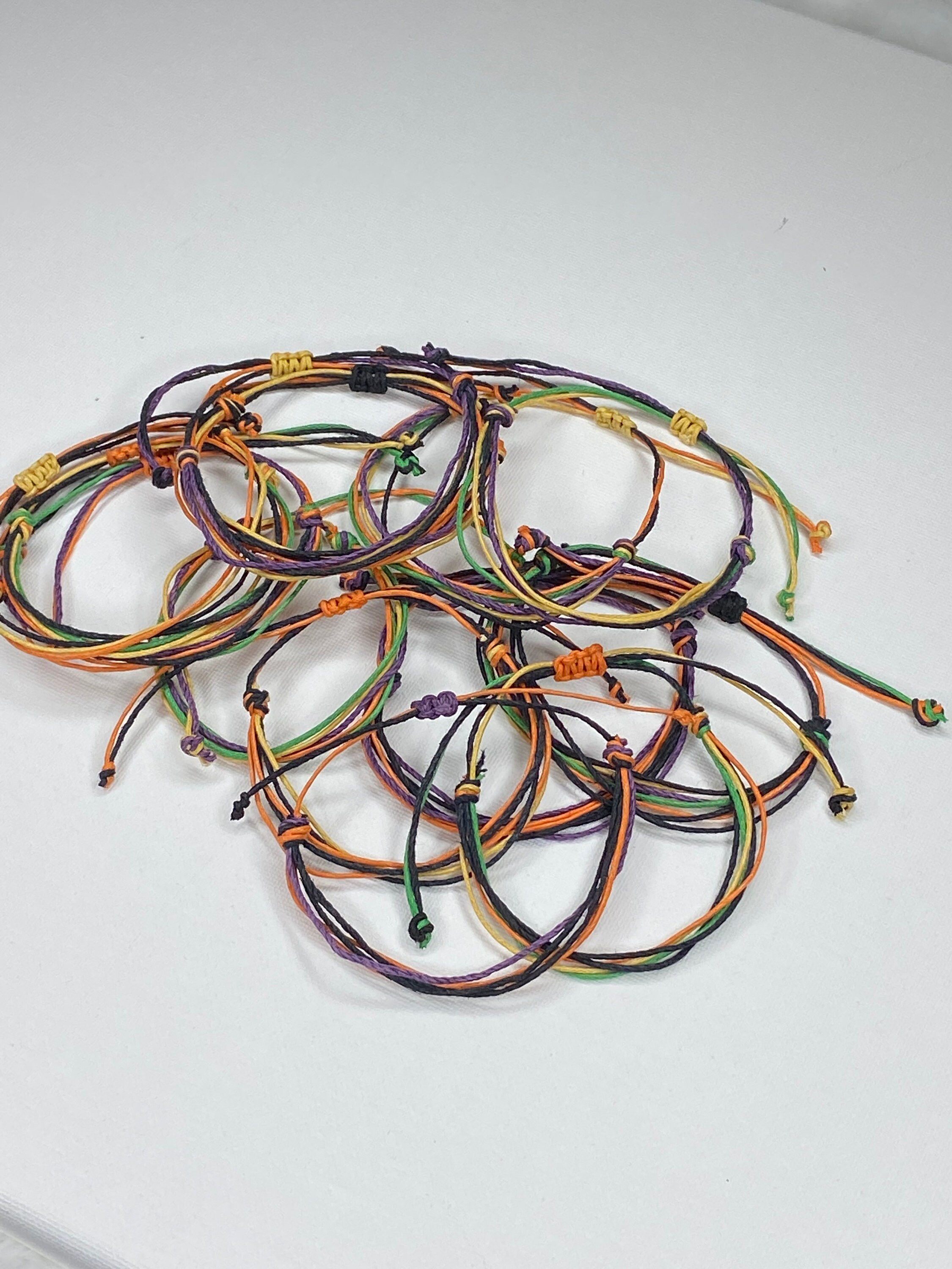 Each adjustable cord bracelet expands to 10 or 13 inches as selected for use as a bracelet or ankle bracelet.
