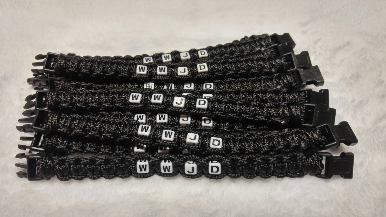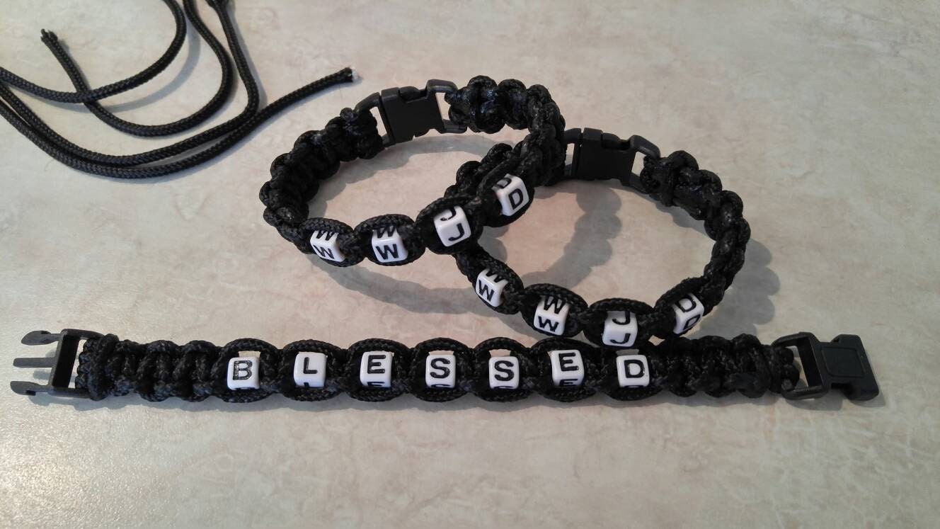 This listing is for one Paracord bracelet made to your choice of wrist size and message. It shall be prepared using 6mm or 7mm cube beads and black 325 lb test parachute cord (made in the USA). If you order a name bracelet, please send a message with spelling of the desired name.