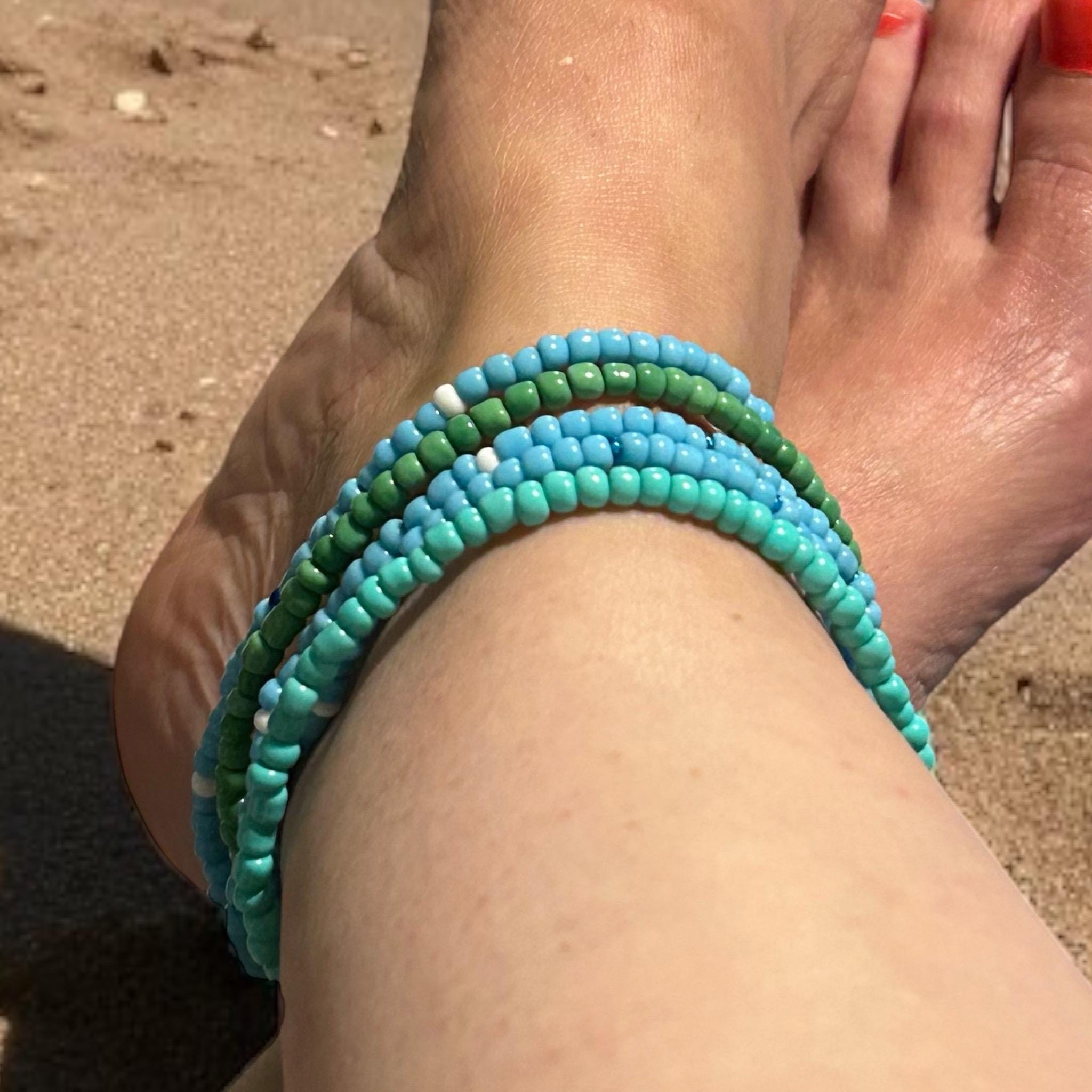 I use size 6/0 seed beads and quality stretch cord to create these bracelets.