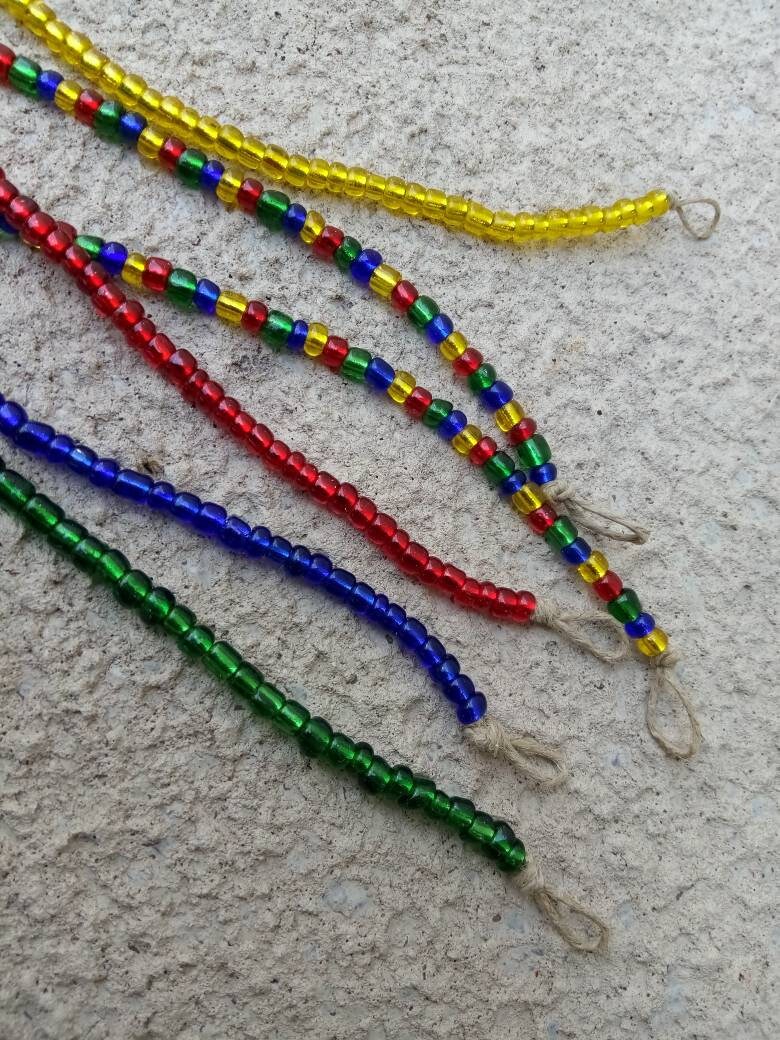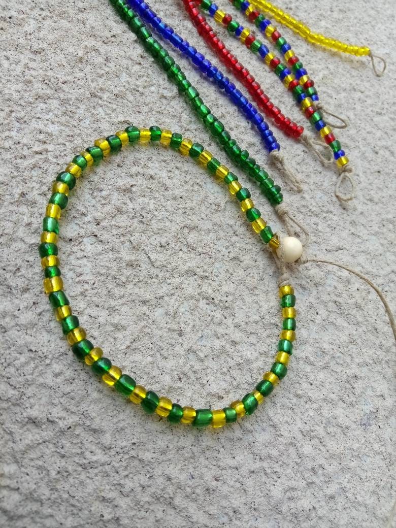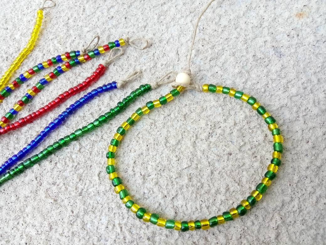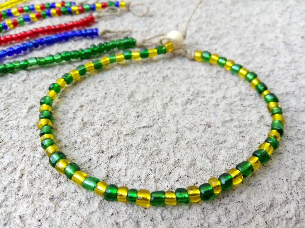 The anklet shown in the main photo is adorned with size 6/0 seed beads.