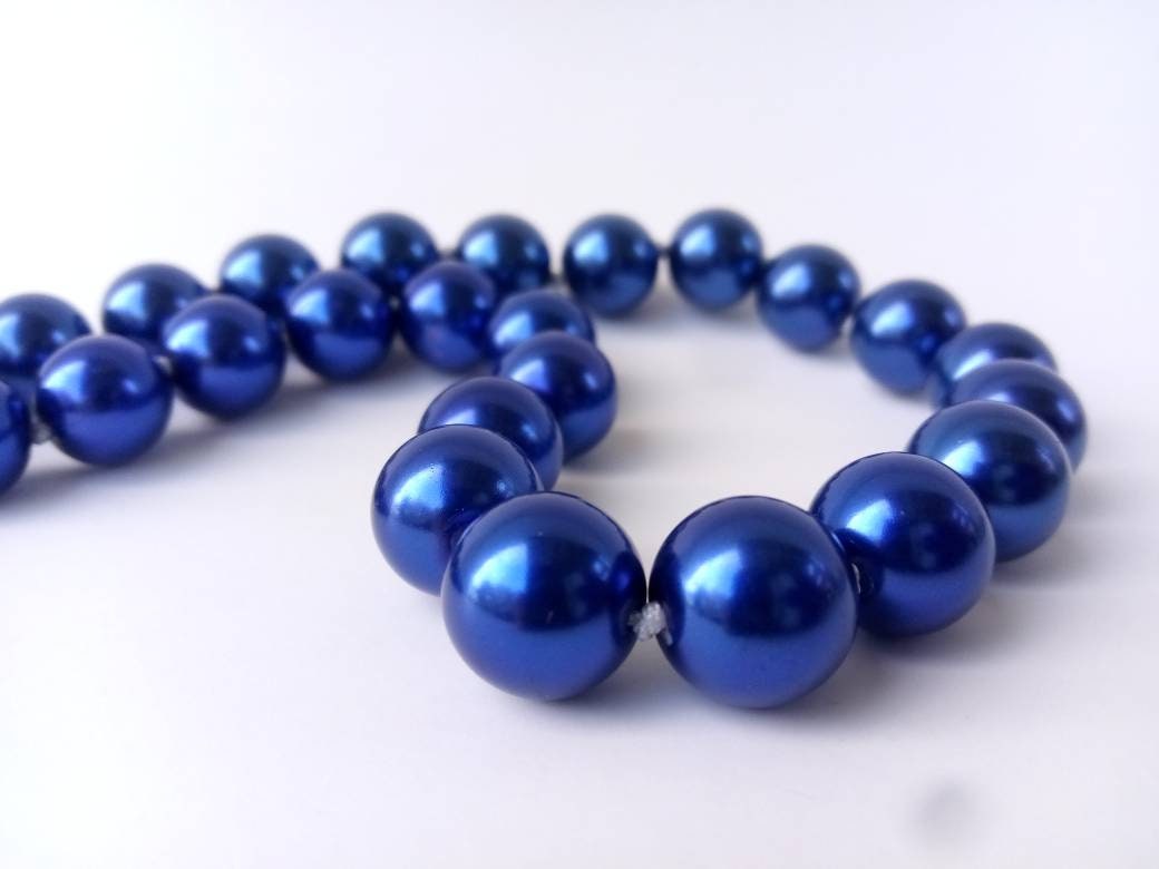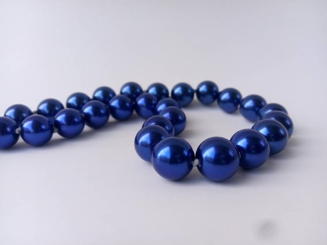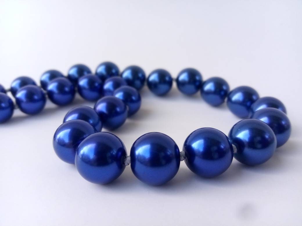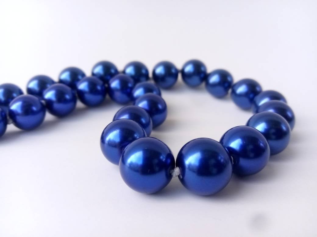 I use 100% grey nylon cord and 10mm blue glass pearl beads to create contract in the beautiful glass pearl necklace shown in the photos.