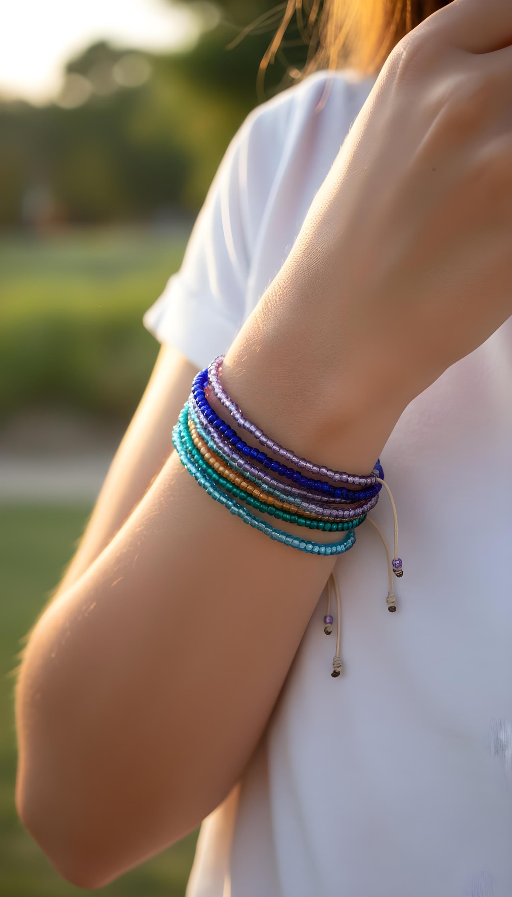 I use sheer 6/0 seed beads and stretch cord to create this bracelet.